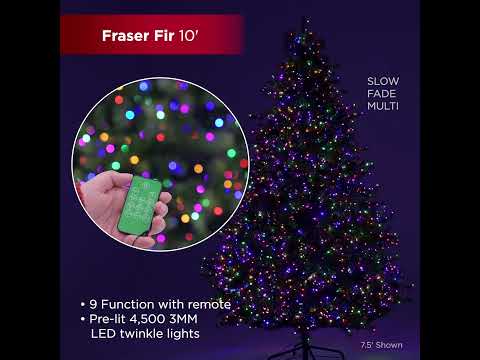 This Christmas tree creates a cozy and nostalgic holiday atmosphere in your home. The soft, warm glow of the lights is a popular choice for those looking to evoke a traditional and inviting Christmas ambiance. Our pre-lit 10 ft. Twinkling Fraser Fir Tree is no exception to this rule. Full branches and hinged construction ensure continued durability over the years. Long-lasting LED lights provide a twinkling glow and are secured in place.