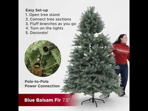 This Christmas, bring one of our Universal Christmas trees into your home and create a cozy and nostalgic holiday atmosphere. Our pre-lit 7.5 ft. Twinkling Blue Balsam Fir Tree is no exception to this rule. Full branches and hinged construction ensure continued durability over the years. The Dual LED bulbs can alternate between white and multicolor lights and include a switch to control different light functions, allowing the bulbs to twinkle on either color setting. The soft, warm glow of the lights is a popular choice for those looking to evoke a traditional and inviting Christmas ambiance.